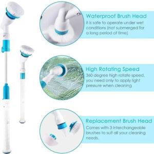 Transform your toughest cleaning tasks with the 3-in-1 Electric Spin Scrubber, the ultimate solution for effortless and efficient home maintenance. This powerful scrubber is engineered to tackle a variety of surfaces, making it ideal for deep cleaning bathrooms, kitchens, and floors without strenuous scrubbing. Equipped with three specialized, interchangeable brush heads—rounded for broad surfaces, flat for smooth areas, and pointed for tight crevices—it adapts to every corner of your home. The adjustable extended handle allows you to reach high walls, low tiles, and difficult spots with ease, eliminating back strain. With simple click-on assembly and cordless operation, this rechargeable scrubber offers professional-grade cleaning power, turning challenging chores into quick, manageable tasks.
