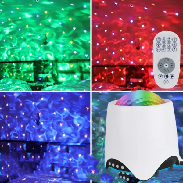 Bring the serene beauty of the ocean into your home with this advanced Ocean Wave Projector, featuring four captivating color modes that create realistic underwater ambiance. This innovative projector generates flowing water patterns in red, white, blue, and green, transforming any room into a tranquil aquatic retreat. With comprehensive remote control functionality, you can adjust colors, speed, lighting modes, brightness, and music settings from anywhere in the room. The built-in Bluetooth connectivity allows you to sync the light shows with your favorite music from any smartphone or device, while voice control enables hands-free operation for ultimate convenience. Additional features include USB/U-disk playback, customizable timing functions, and adjustable volume controls, making this projector perfect for relaxation, meditation, or creating a unique atmosphere for any occasion.