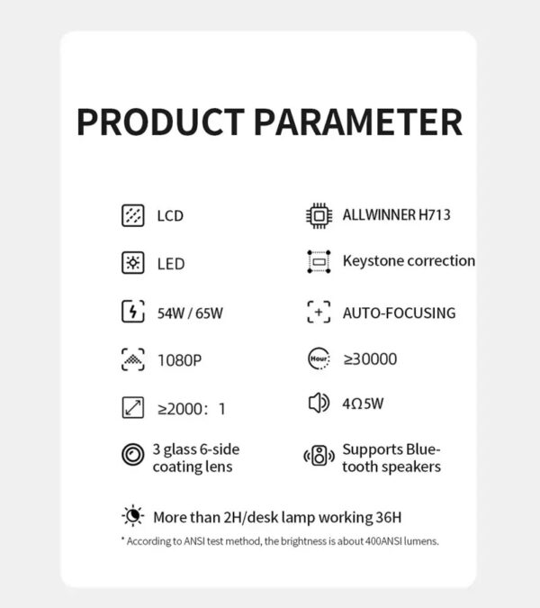 Experience cinematic brilliance anywhere with this 4K Mini Projector, a compact powerhouse featuring Android 11.0 OS for seamless streaming directly from Netflix, YouTube, and more. With 4K resolution support, it delivers stunningly sharp and vibrant visuals for immersive movie nights, gaming, or presentations. The built-in 5200mAh battery provides cordless freedom for outdoor adventures or travel, while wireless casting via AirPlay and Miracast ensures effortless connectivity. Compact yet feature-rich, it includes an HDMI port for additional versatility. Redefine entertainment with this all-in-one smart projector designed for modern lifestyles.