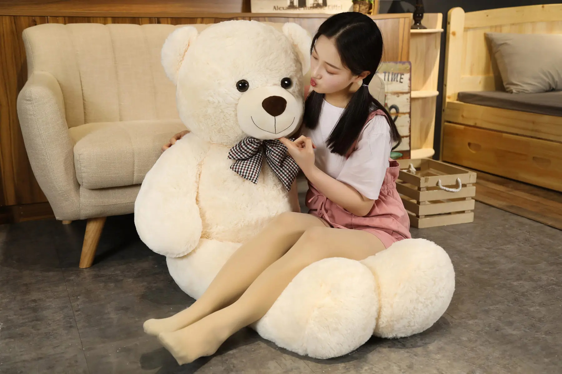 Available in two large sizes (95cm and 120cm), this cute bear doll is crafted to bring joy, warmth, and a touch of love into any space. Whether used as a cozy bedtime buddy, a decorative plush for a bedroom, or a thoughtful gift for a special occasion, this teddy bear is sure to make lasting memories.