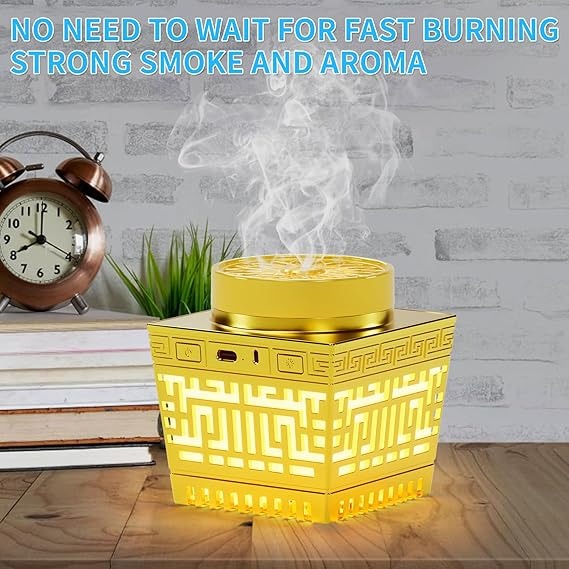 Transform your space with the Burner Oud Bakhoor with Quran Speaker, a unique 2-in-1 device designed to elevate your sensory experience. Combining rich audio quality with a portable oud bakhoor burner, it brings together spiritual enrichment and calming aromas to create a peaceful and harmonious environment.