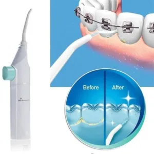 Air-Powered Water Jet for Precision Cleaning: Featuring a manual air-powered water jet, this device provides a precise and powerful water stream to effectively remove plaque and food debris from between teeth and along the gumline. Simply twist off the bottom for easy filling with water or mouthwash, then press the button for a high-pressure cleaning action.
