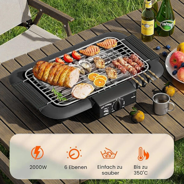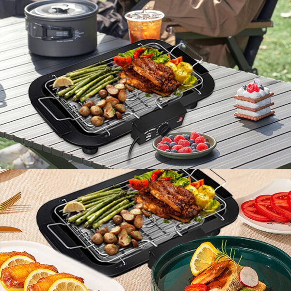 Fire up the flavor anywhere with the Electric BBQ Grill! This powerful 2000W portable grill heats up quickly for sizzling, smokeless cooking—indoors or outdoors. With adjustable temperature control, a chrome-plated grill rack, and a removable drip tray for healthier meals, it’s perfect for grilling meats, seafood, veggies, and more. Weighing just 2kg, it’s lightweight and easy to transport for picnics, balconies, or kitchen countertops. No charcoal, no gas, just pure electric convenience!