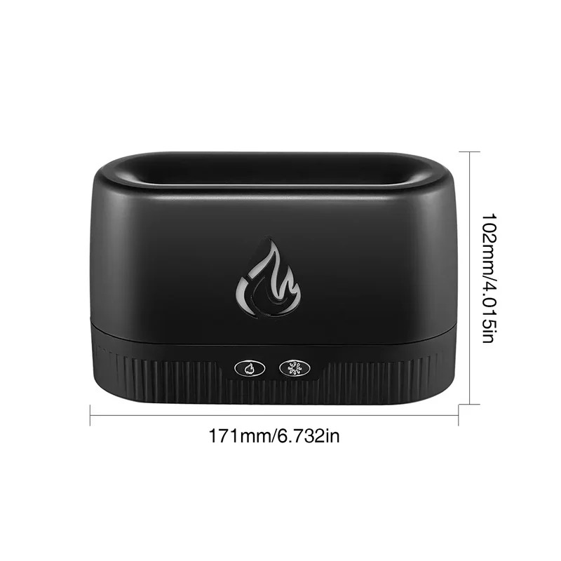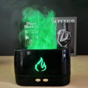 Immerse your space in tranquility with the Flame Aroma Diffuser, a multifunctional device designed to enhance well-being and ambiance. This innovative humidifier allows you to control humidity levels, creating an ideal atmosphere for dry environments while providing ultrasonic aromatherapy—simply add water and a few drops of essential oils to enjoy soothing, fragrant mist. The mesmerizing flame atmosphere lighting adds a modern decorative touch, with adjustable brightness to set the perfect mood. Perfect for families, it promotes respiratory comfort, reduces dryness, and transforms any room into a serene retreat. Easy to use with intuitive button controls for mist and light settings, it’s ideal for bedrooms, living spaces, or wellness areas.