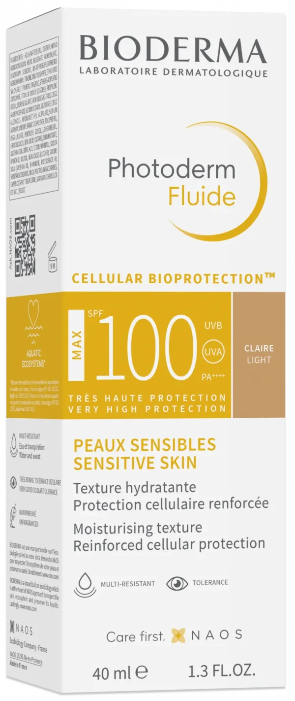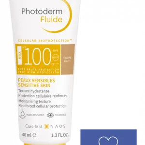 Elevate your sun protection with the Bioderma Photoderm Fluide MAX SPF100, a tinted sunscreen designed for sensitive and sun-intolerant skin. This lightweight, high-performance fluid offers an exceptional level of UVA and UVB protection to shield your skin from the most intense sun exposure and help prevent photoaging. Its light tint evens out your complexion, providing a natural, flawless look without a heavy or greasy feel.