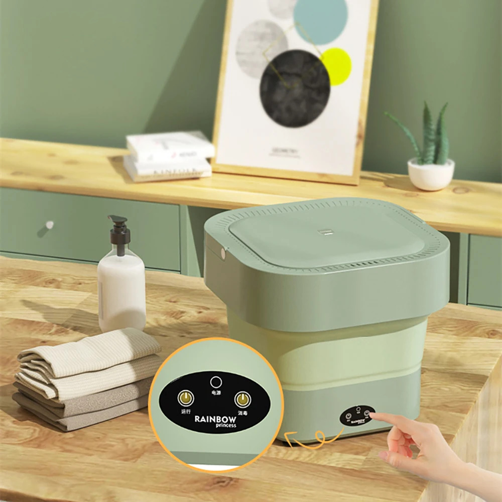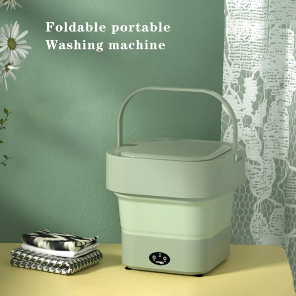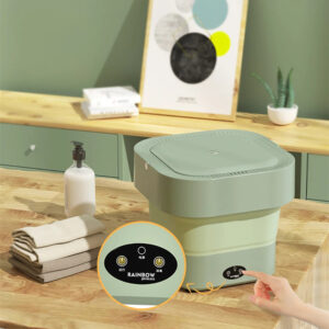 Foldable Mini Washing Machine – A compact, collapsible washer designed for small clothes like underwear, socks, and baby garments, perfect for travel, dorms, and limited spaces.