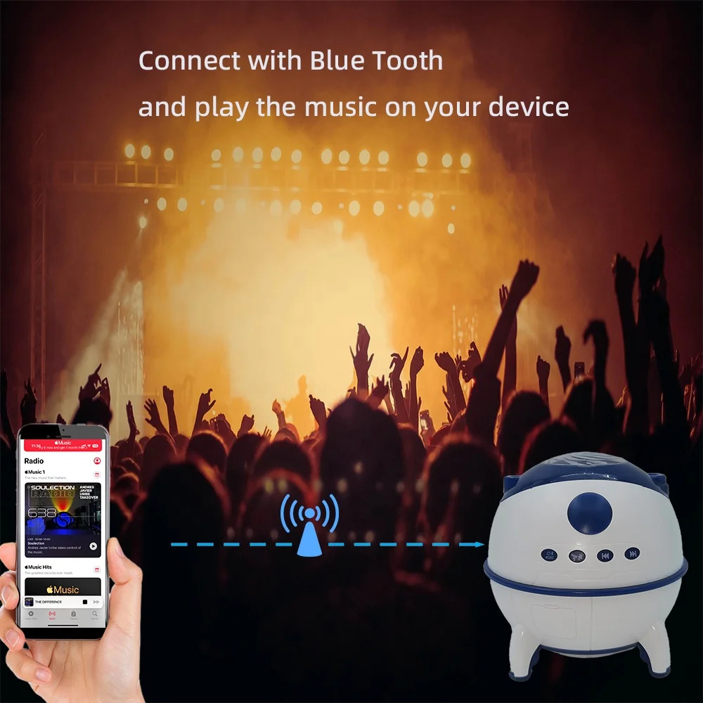 Transform any room into a cosmic wonderland with the Galaxy Light Lamp! This compact LED projector creates mesmerizing aurora waves and starry sky effects in multiple colors (blue, green, purple, red, and more), all controllable via remote. With a built-in speaker, it streams music via Bluetooth or plays relaxing tunes, syncing lights to the beat for a full sensory experience. USB-powered and just 12cm tall, it’s perfect for bedrooms, parties, or meditation. Customize brightness, colors, and modes to match your mood!
