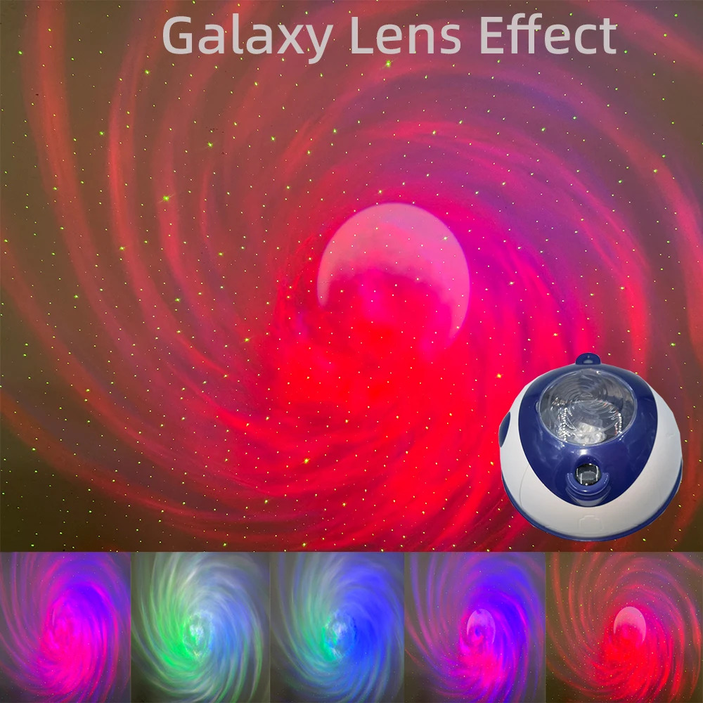 Dual Aurora & Star Projection: Swirling galaxy patterns and twinkling stars in customizable colors.