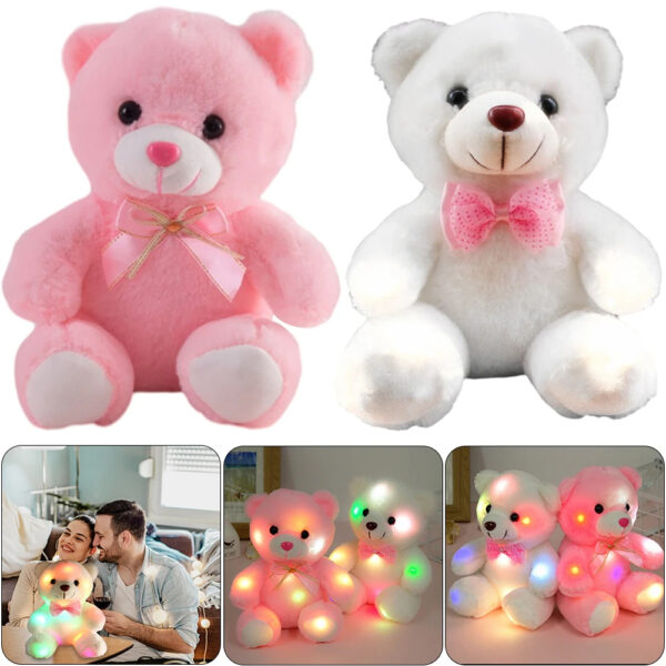 Meet your new favorite cuddle buddy! This incredibly cute simulation bear plush toy is designed to steal hearts and attract attention with its adorable look. The built-in LED light adds a magical touch, making it glow and flash softly at night for a cozy and enchanting ambiance. It’s the perfect gift for Christmas, birthdays, Valentine’s Day, weddings, or just to surprise a loved one – suitable for girls, boys, and friends of all ages.