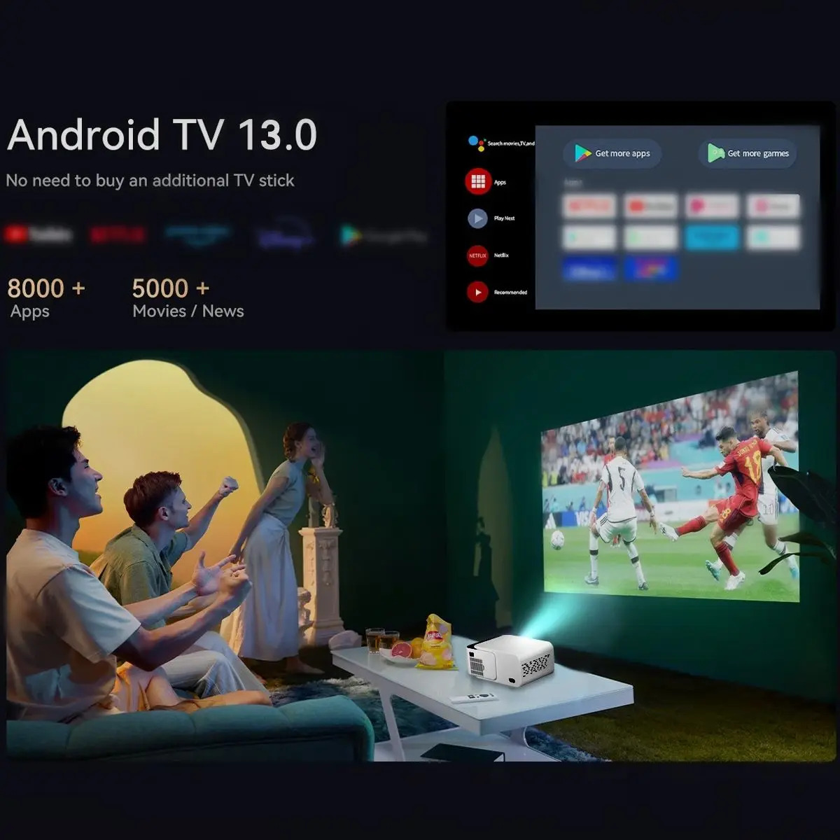 Enjoy crystal-clear HD resolution that brings movies, sports, and games to life with sharp details and rich colors, making every viewing session feel like a theater experience. The high-brightness output eliminates the need for total darkness, allowing flexible use in living rooms, bedrooms, or outdoor setups without compromising clarity. With smart features, stream content directly from popular platforms, mirror devices wirelessly, and access apps for a all-in-one entertainment hub. Easy to set up and user-friendly, it supports multiple connectivity options like HDMI and USB, catering to gaming consoles, laptops, and streaming sticks. Ideal for movie nights, gaming marathons, and social gatherings, this projector is a versatile upgrade for home entertainment, portable setups, and tech-savvy households.