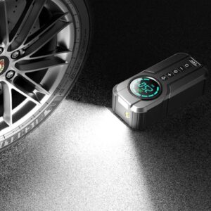 • 🏀 4 Inflation Modes & Auto Shut-Off: Choose from 4 preset modes (car, bike, motorcycle, ball) with options to adjust units in PSI, KPA, BAR, and KG/CM². Once the desired pressure is reached, the compressor automatically stops to prevent over-inflation.