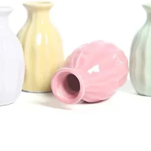 4 Colorful Mini Vases: Pink, green, blue, and yellow ceramic designs