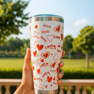 Sip your favorite drinks in the sweetest style with this Love Print Stainless Steel Travel Tumbler. Featuring a charming red heart and “LOVE” design, this double-wall insulated tumbler keeps beverages hot or cold for hours, making it perfect for coffee, tea, smoothies, or iced drinks. Crafted from high-quality stainless steel with a vibrant outer coating, it’s durable, reusable, and eco-friendly. The tall, sleek design fits most car cup holders and bags, ideal for home, office, travel, or gifting. Stay refreshed and reduce waste with this cute and practical tumbler.