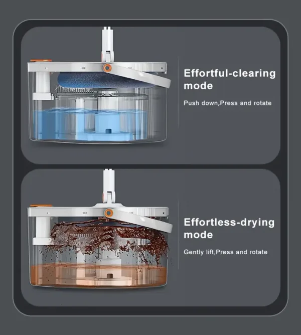 Splash-Free Bucket: Designed to minimize mess during rinsing and wringing.
