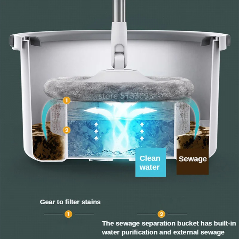 Hands-Free Wringing: Bucket system enables easy rinsing and drying without touching the mop.
