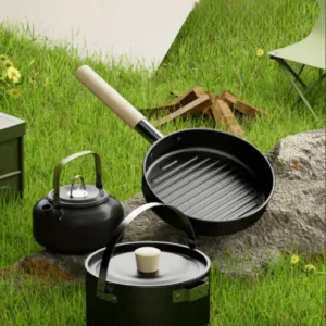 Experience the freedom of outdoor cooking with this complete Cooking Set, designed for campers, hikers, and adventurers. Crafted from durable stainless steel, aluminum, and wood, this versatile kit includes a soup pot, frying pan, water kettle, pot cover, and a detachable handle—everything you need to prepare hearty meals in nature. The quick heat-transfer design saves time and fuel, while the compact, lightweight build makes it easy to pack and carry. Whether you’re boiling water, frying fish, or simmering stew, this set delivers reliability and convenience wherever your journey takes you.