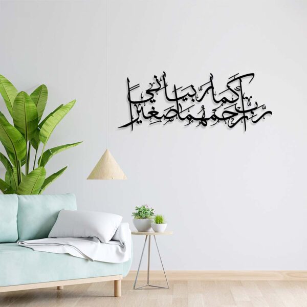 Rabbir Hamhuma Islamic Wall Art – 60x30cm – Black / Gold / Silver