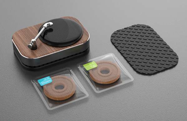 The record automatically rotates under sufficient light energy without charging or battery devices.