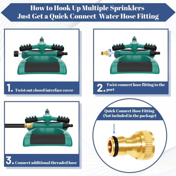 Durable Structure: The water sprinkler irrigation system is made of high-quality thick ABS material and equipped with TPR encapsulated sides. This durable grass sprinkler is super easy to use and takes seconds to complete the installation.