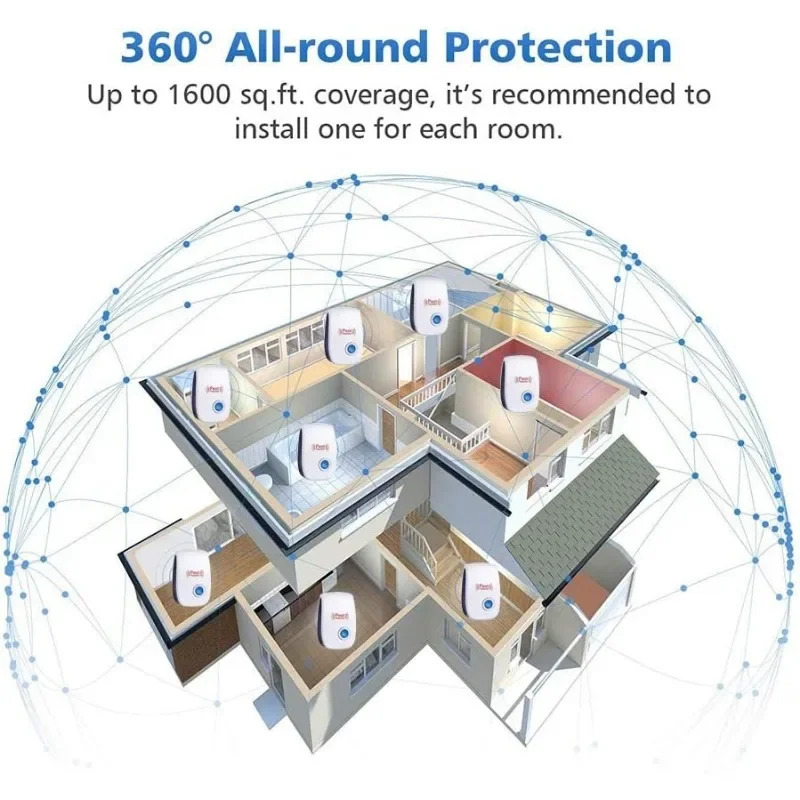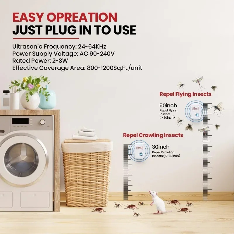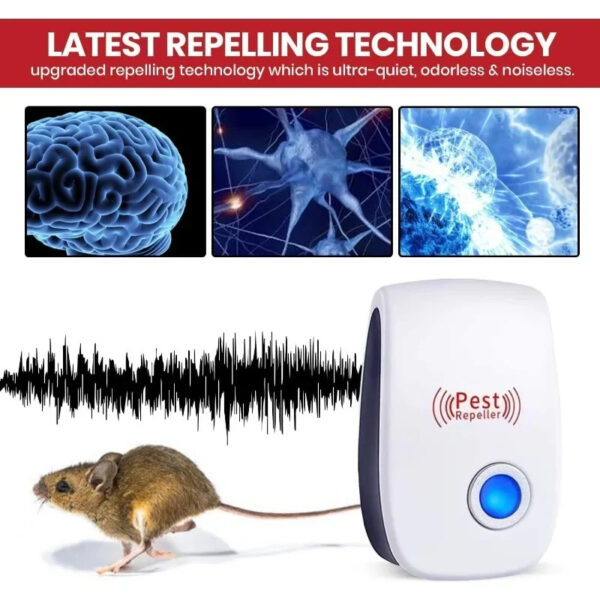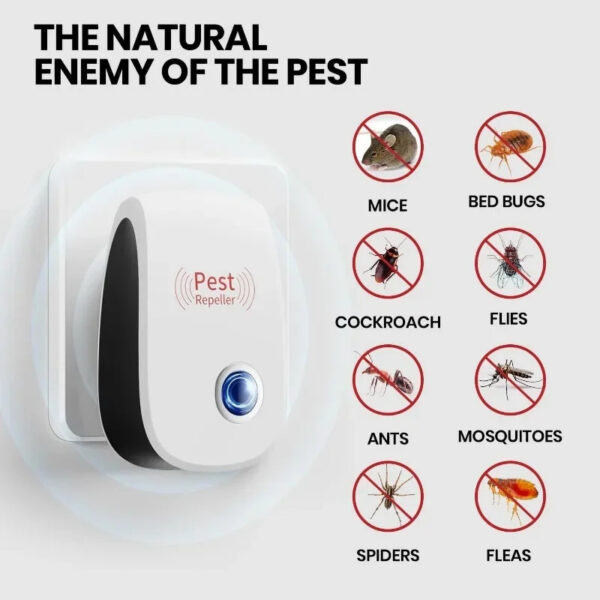 Protect your home with our advanced Ultrasonic Pest Repeller, a silent and effective solution for keeping pests away without chemicals or mess. Using safe, low-frequency ultrasonic waves, this device targets the nervous systems of rodents and insects, driving them out of your space effortlessly. Simply plug it into any wall outlet, and it works quietly 24/7—no odors, toxins, or noise to disturb your family or pets. With a coverage area of up to 1600 square feet per device, it’s ideal for homes, kitchens, offices, warehouses, and garages. Energy-efficient and easy to use, this repeller is your eco-friendly answer to pest problems, offering peace of mind and a cleaner living environment.
