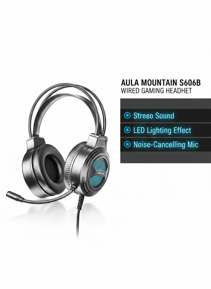 Immerse yourself in every game with the Aula Wired Gaming Headset — a feature-rich, style-forward gaming headset that combines powerful stereo audio, eye-catching LED lighting effects, and a flexible omnidirectional microphone in a comfortable closed over-ear design. Built with a durable braided cable for a stable, reliable wired connection and cushioned ear cups for extended gaming comfort, the Aula headset delivers the complete gaming audio package — performance, style, and comfort in one.